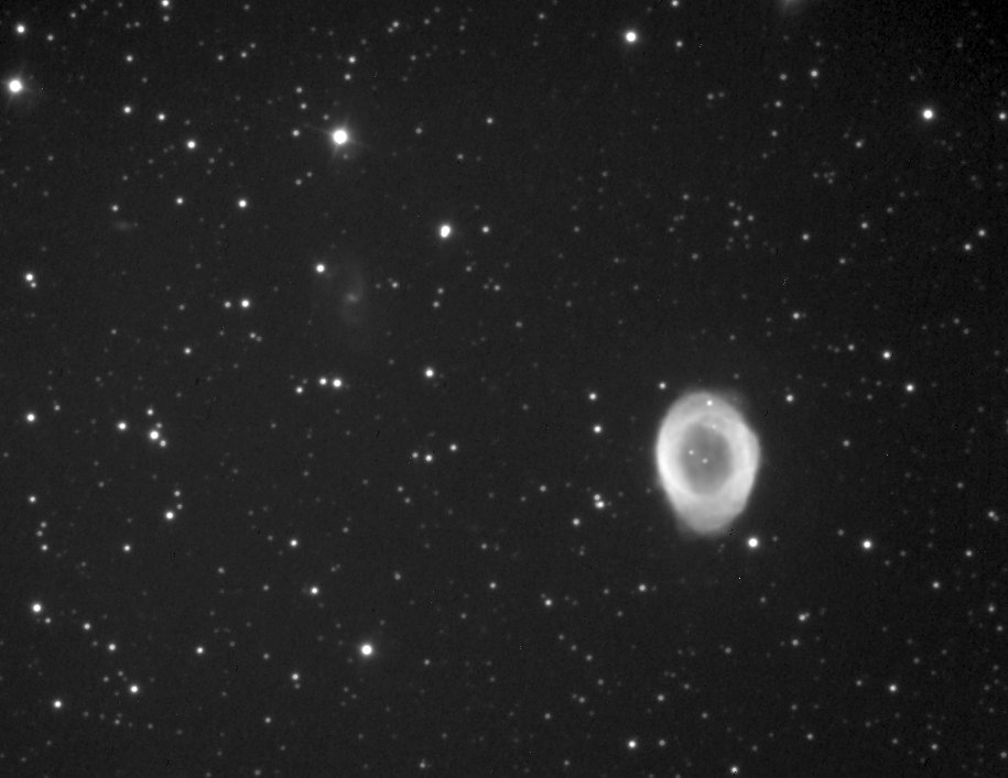 Der Ring zeigt einiges an Struktur, auch sind verschiedene Hintergrundgalaxien sichtbar. Sterne schwächer als 20mag sind erkennbar.