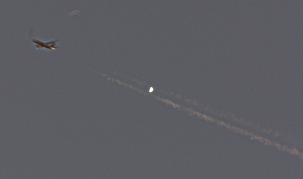 Die Konstellation durch lokale Botanik, 200mm Brennweite. Das war so interessant, das sogar eine Zivilstreife näheres wissen wollte, ob ich denn da die örtliche Bank fotografieren würde...