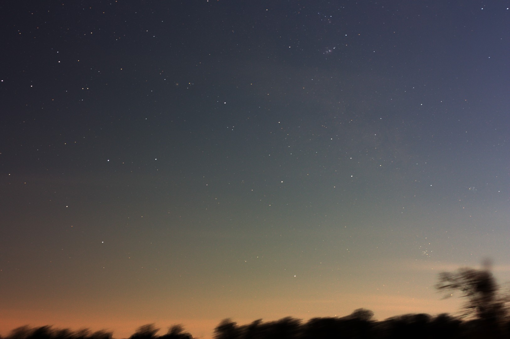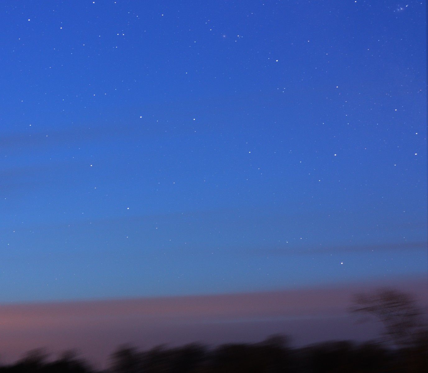 Die Nova Sagittarii 2015 am Morgen des 8. April 2015. Das Wetter war besser als am 3. April, aber der recht volle Mond stand schon recht nah am Feld.