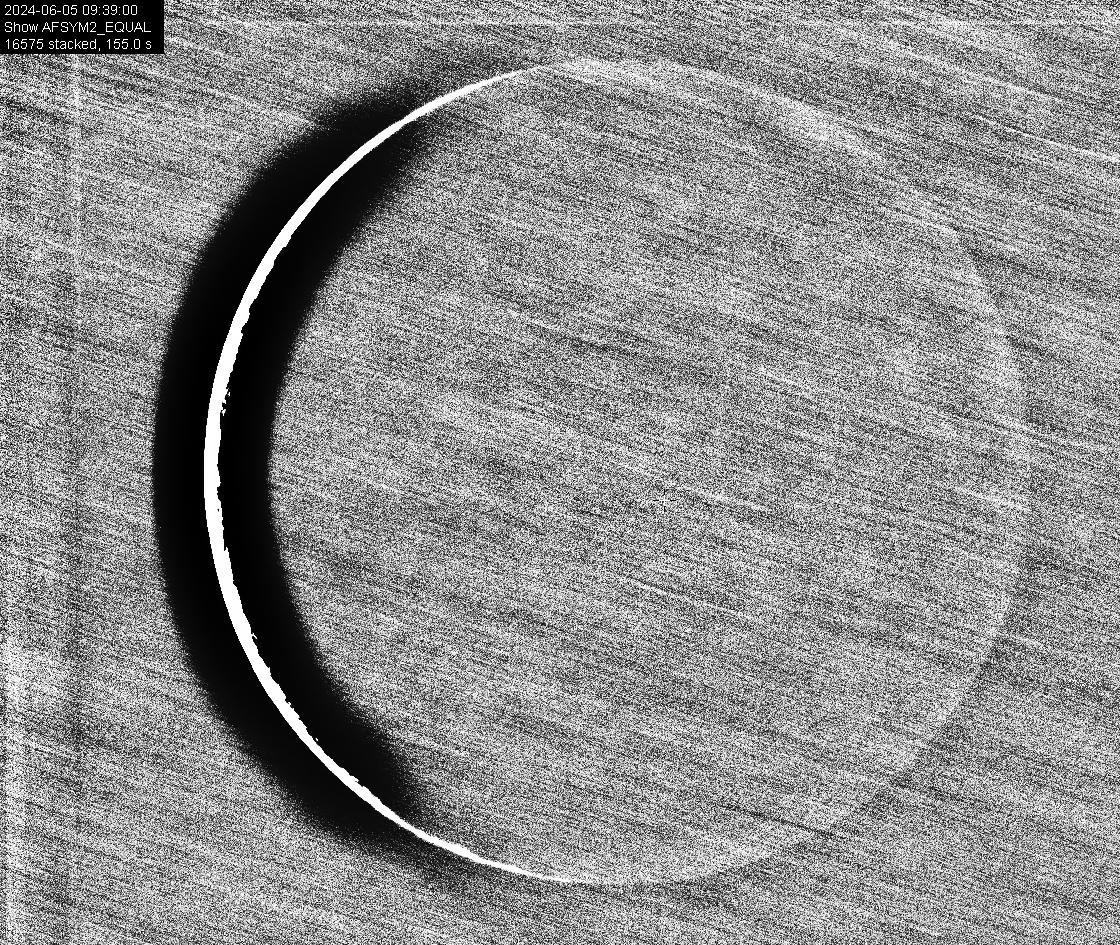Die alte Sichel konnte mit dem Videosystem leicht bei Tag aufgenommen werde. Auch das aschgraue Mondlicht war leicht zu erfassen, die Anlage tut ihren Job.