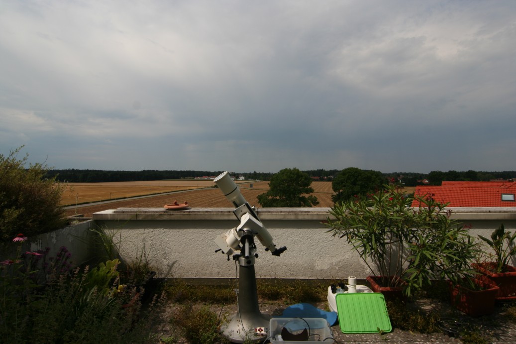 Das aus Westen heranziehende Schlechtwetter zog sich dann bald bis zur Sonne, Regenfahnen sind auch zu erkennen. Aber immerhin war überhaupt was zu sehen, mit korrekter Schärfe.